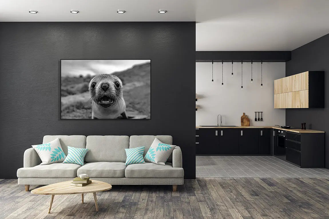 Embrace the luxury of owning a piece of contemporary art that not only captivates with its visual appeal but also conveys a deeper connection to the natural world. The surprised baby fur seal, frozen in time, elicits a range of emotions and serves as a reminder of the precious and delicate balance of life. With its limited edition status, this fine art photography print is a rare find, making it a cherished addition to any art enthusiast's collection.