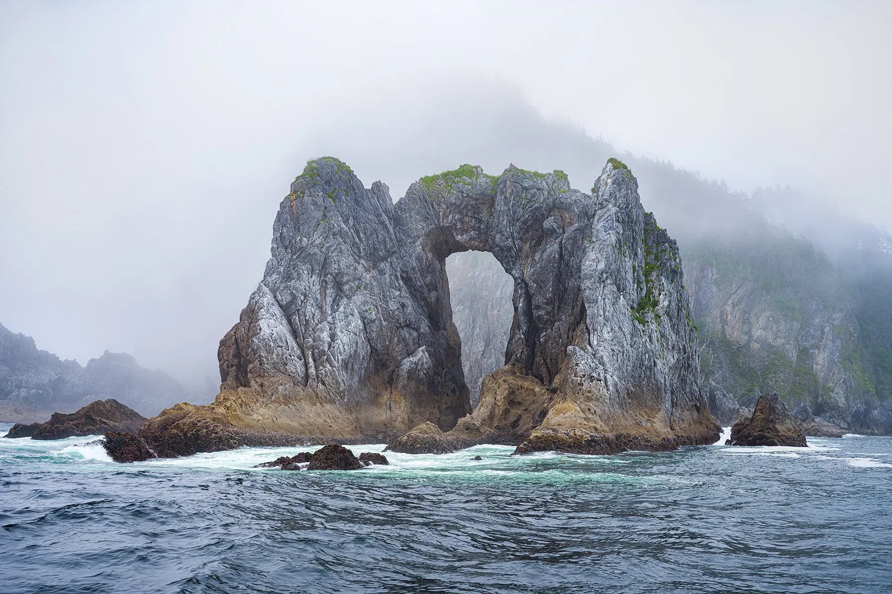 The photo was taken from a very small fishing boat that floated in front of the arch over huge waves. Also another reason why it was not easy to take it, because photo was taken with medium formad camera Hasselblad which requeire tripod for most of accasions. So, photographig hand held on medium format camera on the moving fishing boat was extremely hard.