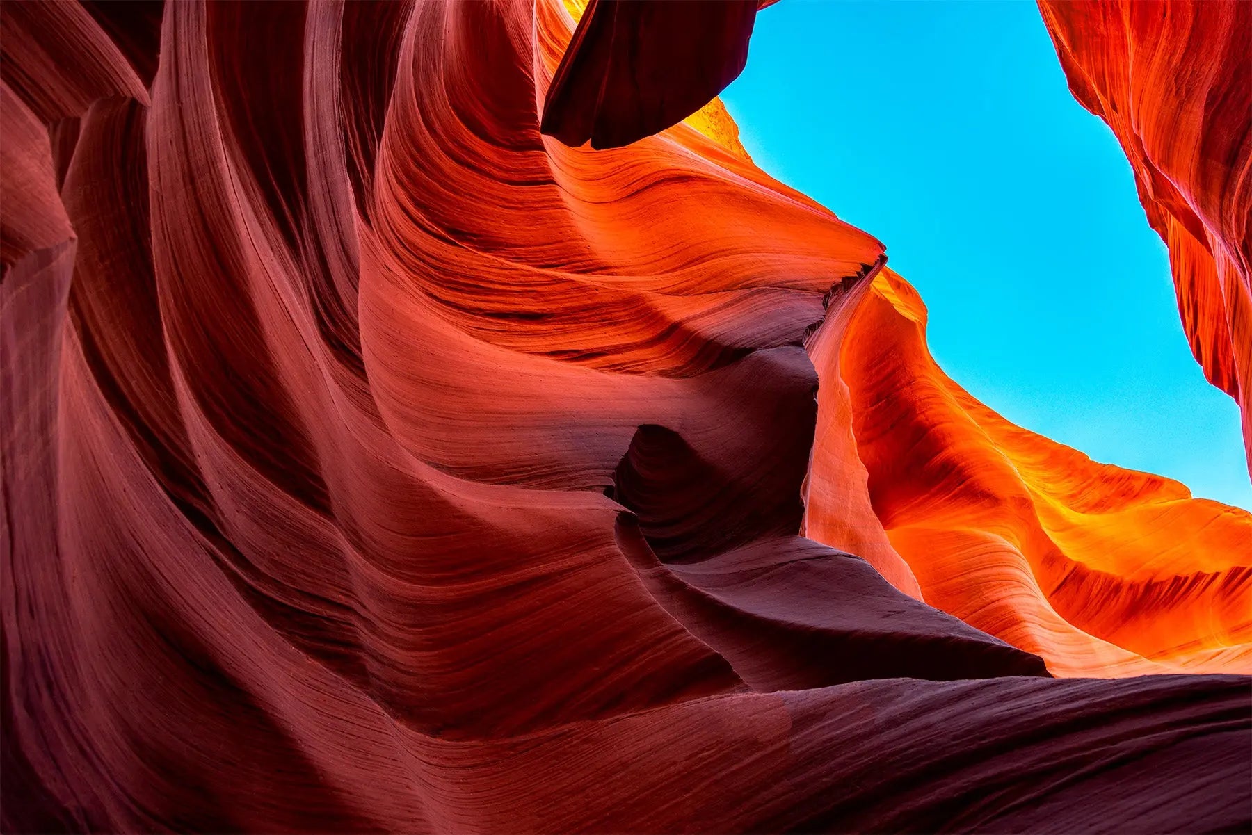 Antelope Canyon carved from the red sandstone for millennia by seasonal flood rains and wind, the canyons are narrow passageways that lead several hundred feet away from the mouth. Antelope Canyon is also one of the most famous slot canyons in the world. Magnificent Antelope Canyon was named for the herds of pronghorn antelope that once roamed the area.
